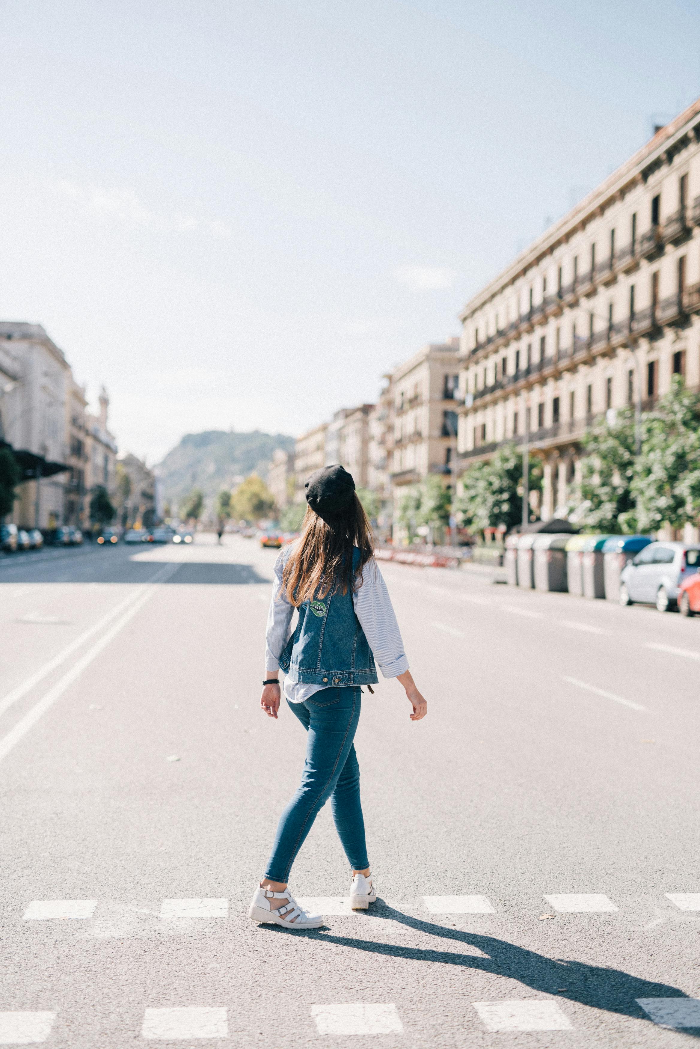 Lonely Woman Walking On Empty Road Stock Photo Free Download